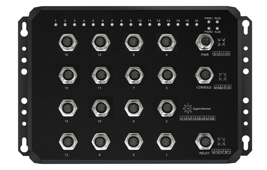 • 飛暢科技-M12 IP68防護 管理型16路千兆電交換機